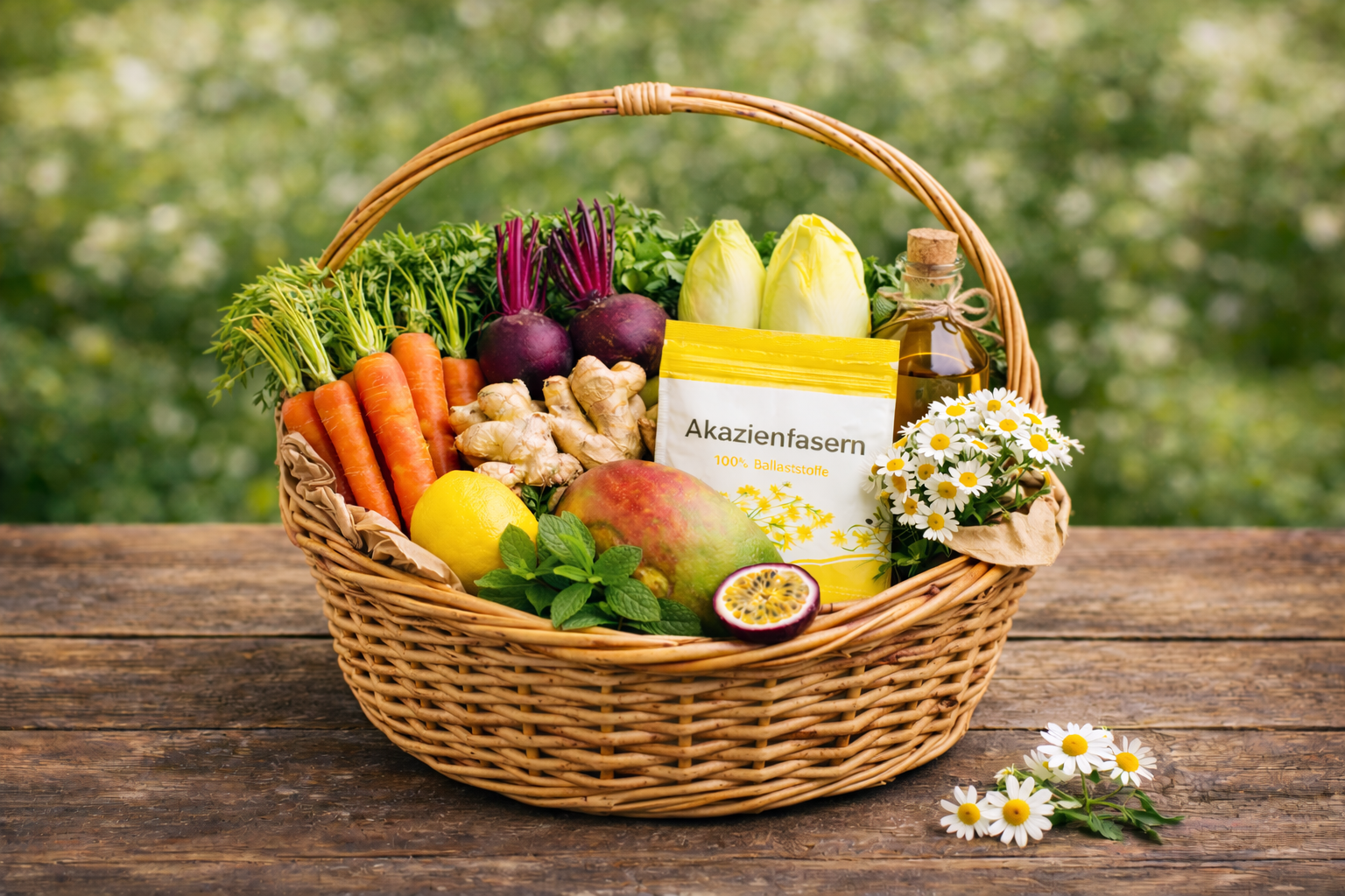 Apfelessig, Chicorée und Akazienfaser unterstützen die Verdauung und die Darmgesundheit.